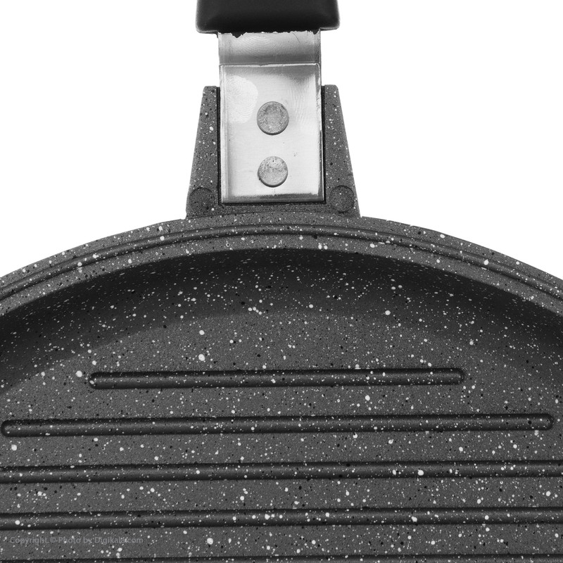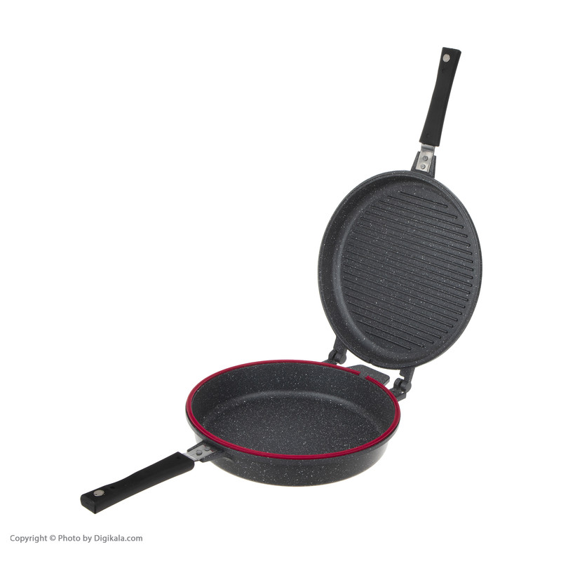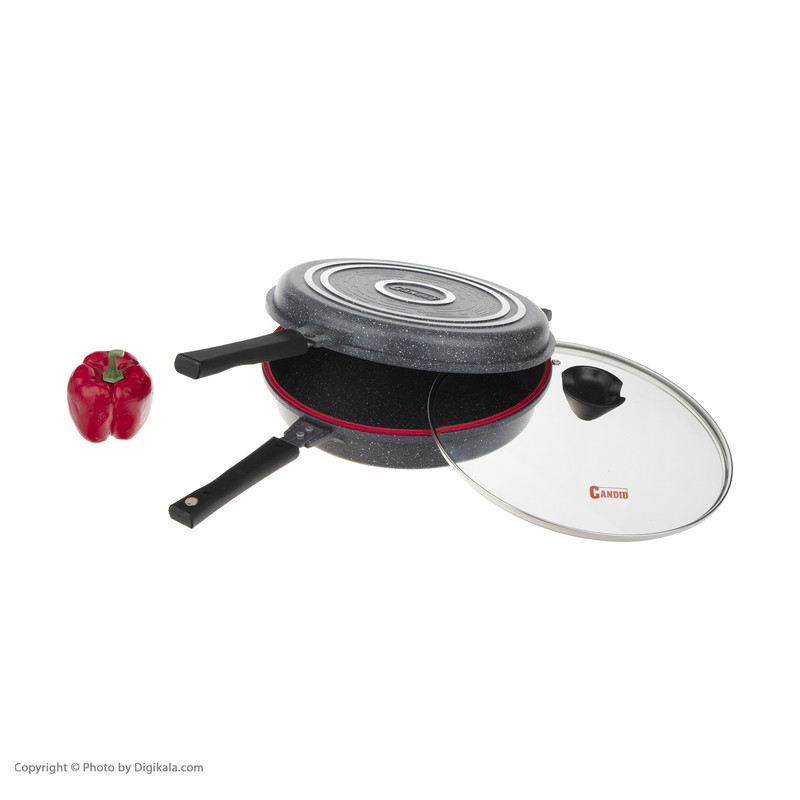 یکی از ظروفی که در همه آشپزخانهها کاربرد زیادی دارد تابه است. به طور معمول ما از این ظرف برای سرخ کردن انواع مواد غذایی استفاده میکنیم و حتی گاهی اوقات برای جلوگیری از سوختن ماده غذایی با پخت بهتر آن، روغن زیادی مصرف میکنیم اما همین موضوع سلامتی ما را به خطر میاندازد. ما میتوانیم با جایگزین کردن ماهیتابه دو طرفه یا رژیمی، در مصرف روغن صرفه جویی کرده تا علاوه بر صرفهجویی اقتصادی، از سلامت خود نیز مراقبت کرده باشیم. تابه دو طرفه کاندید کد 01 دقیقا از همین مدل کالا است. هر دو سمت این تابه را میتوان استفاده کرد و بعد از سرخ شدن یک سمت از مواد غذایی تابه را به سمت دیگر چرخاند. از مزیتهای دیگر این کالا داشتن یک درپوش شیشهای مجزا است تا هر زمان که تمایل داشتیم آن را جایگزین کنیم. جنس این کالا از آلومینوم با روکش گرانیت است و دسته آن از باکالیت ساخته شده است.