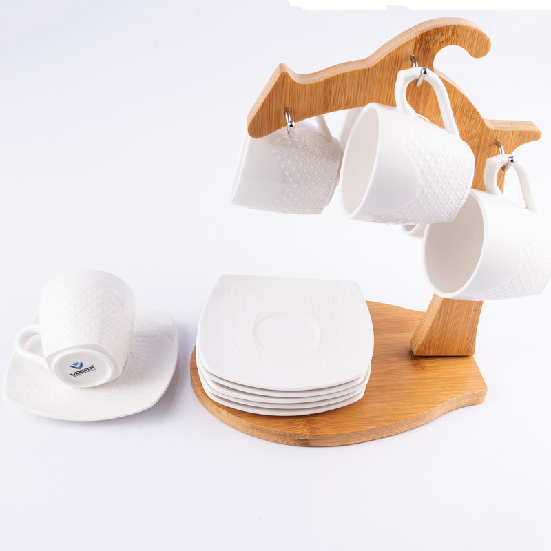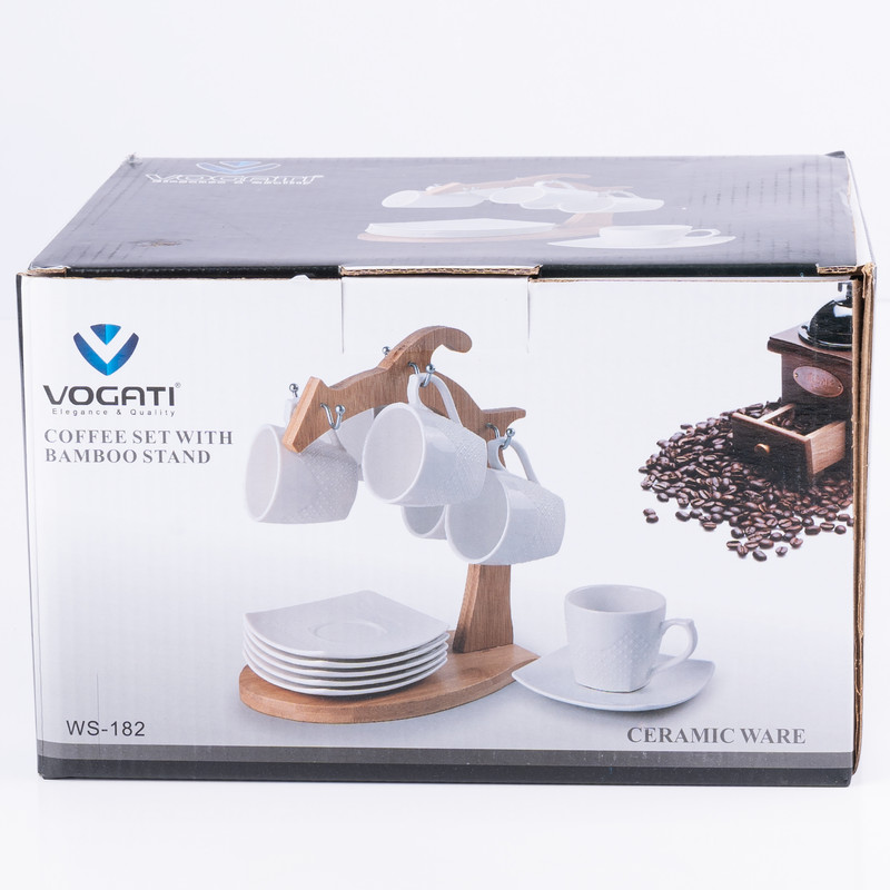 استفاده از یک سرویس قهوه خوری شیک و خوش نقش و نگار می تواند جلوه ای خاص به میز شام شما ببخشد. چیدمان میز یکی از مهم ترین اصول پذیرایی در مهمانی ها به بهترین شکل می باشد. هر چه چیدمان و رنگ های به کار رفته در چیدمان میز زیباتر و شکیل تر باشد، اشتیاق فرد برای نوشیدن و خوردن بیشتر می شود. سرویس قهوه خوری 12 پارچه وگاتی مدل WS-182 وگاتی یکی از محصولات بسیار زیبا و پر طرفدار به دلیل طراحی خاص و منحصر به فرد آن میباشد.استند نگه دارنده ی این ماگ ها از جنس چوب سبک و بادوام بامبو است و دارای قلاب هایی است که انها را محکم نگاه می دارد و از افتادن انها جلوگیری میکند.