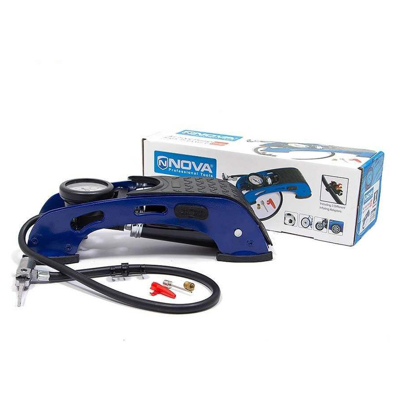 تلمبهی مدل MMA-N-9013 محصولی است که توسط شرکت «نووا» (NOVA) تولید میشود. تلمبه بادی پایی تک پمپ نووا مدل MMA-N-9013 مجهز به سیلندرهای آلومینیومی با قاب تمام استیل ، بدنه فلزی محکم و مقاوم شلنگ باد بادوام و انعطاف پذیر ، روکش لاستیکی شیاردار ضدلغزش و ایمن ، سیستم قفل پدال ، گیج با دو درجه بندی PSI و Bar و سه نازل با کارایی های متنوع می باشد. این محصول از طراحی منحصربه فرد جهت کاربری با حداقل میزان انرژی مصرفی برخوردار است. همچین از پیستون به جای میله جهت مقاومت و قدرت بیشتر و کارایی بالاتر استفاه شده است. وسایل جانبی که به همراه این مدل آمده، کاربرد این پمپ را افزایش میدهد. در این مدل با استفاده از دو سوزن که بهعنوان وسایل جانبی در کنار این محصول وجود دارد، میتوانید لاستیک خودرو، چرخ موتورسیکلت یا دوچرخه، قایق بادی و انواع توپهای ورزشی را باد کنید.