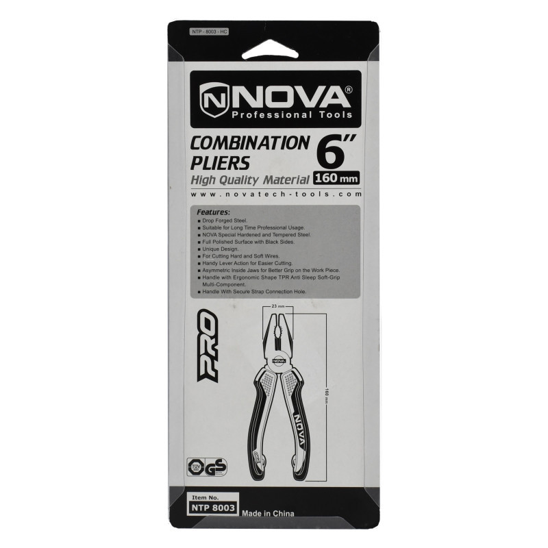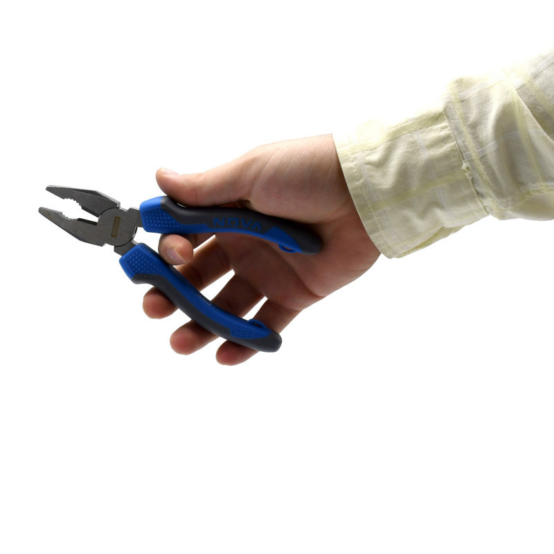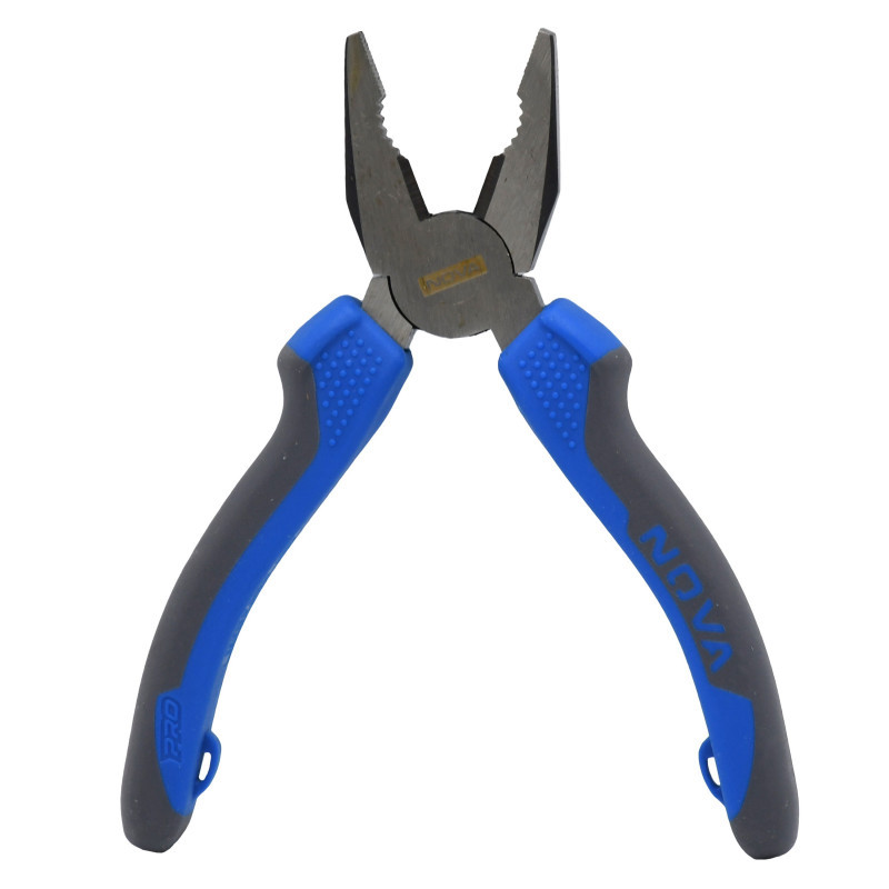 انبردست، این ابزار ساده و اولیه، جزو ضروریترین ابزار های خانهها، خودروها، کارگاههای مکانیکی، سیم کشی، لوله کشی، نجاری، جوشکاری و سایر مشاغل فنی است.از جمله کاربردهای این ابزار دستی که به صورت اهرمی عمل میکند، نگه داشتن اشیا، خم کردن اشیا، بریدن سیم و کابل، چرخاندن یا خم کردن قطعات فلزی کوچک و بیرون کشیدن میخ از دیوار یا سطوح سخت دیگر است.دسته ی انبردست معمولاً با روکش پلاستیکی عایق الکتریسیته و حرارت و به صورت ضدلغزش ساخته میشود. نوک انبردست معمولا دندانهدندانه است تا اشیا را به خوبی و بدون سر خوردن در بین خود نگاه دارد. به طور کلی، از نوک انبردست برای نگاه داشتن چیزها و از قسمت میانی آن برای قطع کردن سیم استفاده می شود. پس هر انبردست سه قسمت دارد: دسته های عایق، محور اصلی مرکزی که عمل باز و بسته کردن را انجام میدهد و فک ها و یا همان نوک انبر.یک انبردست خوب باید دارای ویژگیهایی باشد. از جمله باید جنس و کیفیت مواد اولیهی آن مناسب و مرغوب باشد تا هم استحکام و دوام خوبی داشته باشد و هم بتواند نیروی مناسبی را به اشیا وارد نماید. انبردست ها معمولاً از آلیاژ های مختلف در ترکیب با فولاد ساخته می شوند. یکی از مهمترین و مصرفیترین این ترکیب ها، ترکیب کروم وانادیوم با فولاد است که دوام و استحکام خوبی در برابر ضربه، سایش، خوردگی و زنگزدگی دارد.یک انبردست خوب باید دارای طراحی و ساخت استاندارد، ارگونومیک و سازگار با بدن باشد و مکانیزم اهرمی آن به گونهای باشد که با اعمال کمترین نیروی دست، بیشترین نیروی خروجی را بر روی قطعهی کار وارد آورد.انبردست نووا مدل NTP-8003، یکی از ابزار الات نوا است که از فولاد کروم - نیکل سختکاری و حرارت دیده شدهی بادوام به روش دراپ فورج ساخته شده است و به طور کامل پولیش شده تا در برابر خوردگی و ضربه و سایش، مقاوم و مستحکم باشد. این انبردست ارگونومیک و خوشدست، در حدود 160میلیمتر طول و 205 گرم وزن دارد. سعی شده تا در ساخت مکانیزم اهرمی این ابزار، به گونهای عمل شود تا با نیروی کمی از طرف دست کاربر، نیروی قابل قبولی از این انبردست به سطح قطعهی کار وارد شود. فکهای انبردست نووا که تا میزان حداکثری 30 میلیمتر گشوده میشوند، تقارن درونی خوبی دارند که باعث میشود تا نگه داشتن قطعه برای شما کاری آسان به نظر برسد.