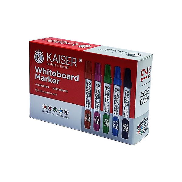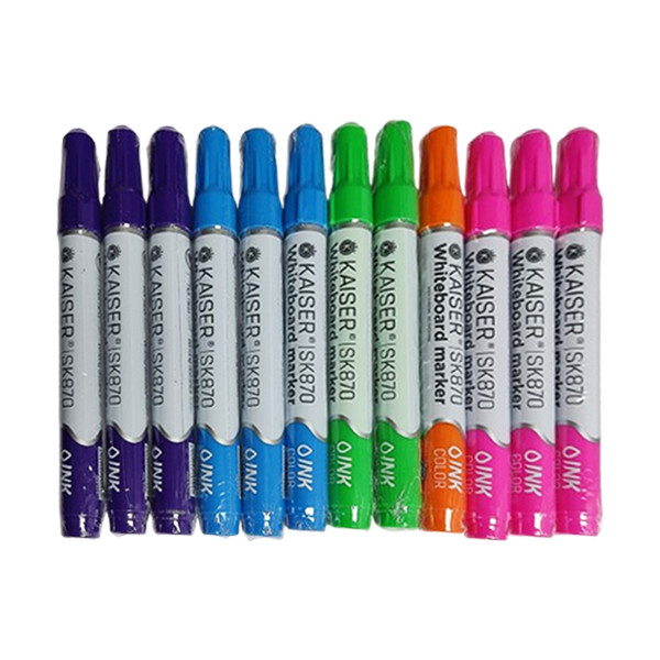ماژیک وایت برد کایزر کد SK870 رنگی دارای نوک نرم و مقاوم است و از مواد درجه یک بهداشتی تهیه شده است. ماژیک های وایت برد رنگی کایزر رنگ درخشانی دارند وبسیار با کیفیت هستند