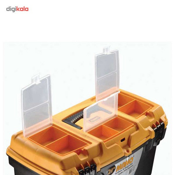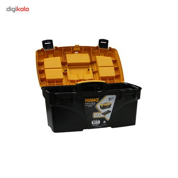 شرکت MANO مدل CO21 خود را با رعایت مشخصههای فوق تولید کرده و در اختیار علاقهمندان به خرید یک جعبه-ابزار پلاستیکی، قرار داده است. این جعبهابزار فارغ از جنس پلاستیکی آن از استحکام خوبی در بدنه، لولا و قفلها برخوردار است. برای این جعبهابزار دستگیرهای تاشو به همراه سه محفظه سربدار کوچک جهت قرار دادن اقلام ریزی چون پیچ و مهره و ... در نظر گرفته است، که همگی روی درب آن قرار داده شده است. کسانی که این جعبه را تهیه میکنند، پس از بازنمودن قفلهای آن، یک سینی دستهدار پرتابل را خواهند دید که برای قرار دادن ابزارهای کوچکتر مناسب است. با برداشتن این سینی فضای اصلی جعبه را مشاهده میبینید که غالب ابزارها در این فضا قرار خواهند گرفت. باید در نظر داشت که این جعبهابزار صرفا در محل کار یا خودرو کاربرد ندارد و میتوان یک عدد از آن را برای منزل تهیه کرد و ابزار موجود در منزل را در آن قرارداد و یا حتی بهعنوان جعبه کمکهای اولیه از آن استفاده کرد.