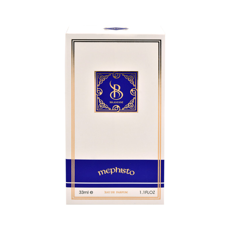 این عطر برندینی برگرفته از عطر Xerjoff Casamorati 1888 Mefisto می باشد نت های بکار رفته در این عطر عبارتند از : نت آغازین : ترنج ، گریپ فروت ، لیمو شیرین نت میانی : اسطوخودوس ، رز ، زنبق نت پایه : مشک ، چوب معطر صندل ، سرو ، عنبر ، سانتولینا