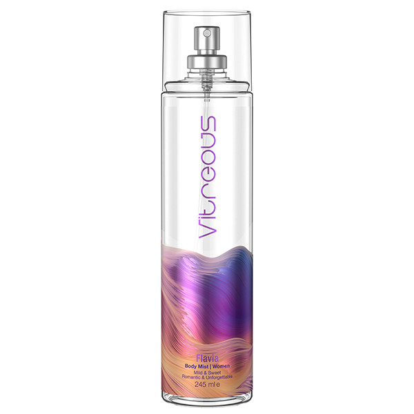 بادی میست ویتروس مدل فلاویا، با رایحه ای شیرین و ملایم، تداعی کننده یک بانوی اصیل است. نت آغازین: برگاموت، ماندارین نت میانی: یاس نت پایانی: وانیل، مشک، پاچولی (نعناع هندی)