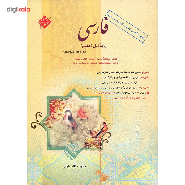 - پایهی هفتم درخشان و مدارس برتر - مطابق با آخرین تغییرات کتاب درسی جدید - شامل بیش از 700 پرسش چهارگزینهای دستور زبان فارسی، معنی و مفهوم، لغت، آرایههای ادبی و ... - دارای صفحات مصور