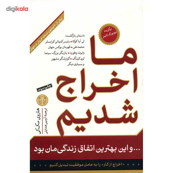 «ما اخراج شدیم و این بهترین اتفاق زندگیمان بود» نام کتابی به نویسندگی «هاروی مک کی» و ترجمه «آرمین هدایتی» است. در این کتاب با تجربههای خود نویسنده و شخصیتهای مشهوری مانند محمدعلی کلی (قهرمان مشتزنی)، رابرت ردفورد (بازیگر هالیوود)، لری کینگ (گزارشگر مشهور) و ... آشنا میشوید که همگی تجربهی تلخ اخراج از کار را به تجربهای شیرین و مایهی ترقی بدل کردهاند. «ما اخراج شدیم» هم سوژه جالبتوجهی دارد و هم از زبانی روان بهره میبرد. شما در این کتاب با وضعیت اشتغال و فراز و نشیبهای آن آشنا میشوید. با افرادی که یکباره و بدون هیچ پیشزمینهای از کارشان اخراج شدند. افرادی که در جریان روند اخراجشان قرار داشتند اما کاری از دستشان برنمیآمد. افرادی که ابتدا متهم به خیانت و سپس از کار بیکار شدند. افرادی مسن یا جوان و زن یا مرد که عذرشان خواسته شد بیآنکه بدانند چرا. در پشت جلد کتاب میخوانید: «این کتاب تقدیم به میلیونها انسانی است که در سراسر دنیا بهعناوین مختلف از کارشان اخراج شدهاند. در یک جمله میتوانم به آنها بگویم اخراج انتخاب شما نبود؛ اما بازگشت به مسیری که از ابتدا میبایست در آن قرار میگرفتید انتخاب شماست و به همین منظور من تلاش کردهام تا در این کتاب با 25 شخصیت بزرگ و شناختهشده دنیای کار و تجارت، نظیر لری کینگ، رابرت ردفورد، مایکل بلومبرگ و ... همصحبت شوم تا داستان بازگشت آنها را از زبان خودشان بشنویم.» این کتاب را انتشارات «کتاب پارسه» منتشر کرده است.