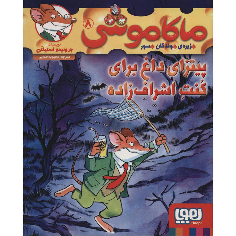 کتاب «پیتزای داغ برای کنت اشرافزاده» را «جرونیمو استیلتن» نوشته و «محبوبه خدایی» به فارسی ترجمه کرده است. این کتاب هشتمین جلد از مجموعهی «ماکاموشی» است که برای کودکان گروه سنی (ب) و (ج) تدوین شده است. در توضیح پشت جلد کتاب میخوانیم: «به ماکاموشی جویندگان جسور خوش آمدید! من جرونیمو استیلتن هستم. سر دبیر پرفروشترین روزنامه جزیره ماکاموشی. ولی بیشتر دوست دارم داستانهای ماجراجویانه بنویسیم .کتابهای من توی ماکاموشی مثل توپ صدا میکنند و حسابی پرفروشاند.از پنیر سوئیسی تازه، خوشمزهتر و از پنیر چدار کهنه تند و تیزترند. سیبیلچسب و با مزهاند. خندهدار و فراموشنشدنی. دهنتان را آب میاندازند به سبیلهایم قسم. پسرعموی خرابکارم در سرزمین موشهای خونآشام گیر افتاده بود و قبل از اینکه حتی یک کلمه جیر بزنم، خواهرم، ته آ، من را کشاند و برد سرزمین موشهای خونآشام تا او را نجات بدهیم. چه میدانستیم آنجا با چه معماهای ترسناکی روبهرو میشویم و چه موجوداتی در قلعه کنت اشرافزاده انتظارمان را میکشند؟» کتاب حاضر را انتشارات «هوپا» منتشر کرده و در اختیار مخاطبان قرار داده است.