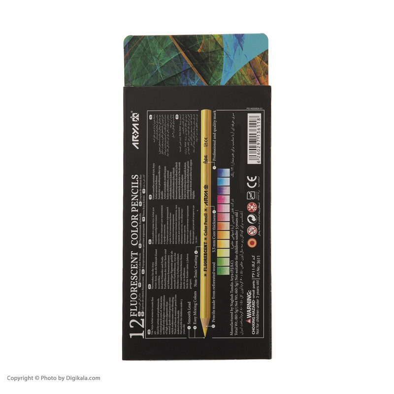- مداد رنگی فلورسنت - ضخامت گرافیت: 3.3 میلیمتر - سری حرفهای آریا - مناسب برای حرفهای ها و هنرمندان - مغز مداد دارای رنگدانههای خالص و مرغوبتر - دارای قابلیت ترکیب پذیری بیشتر - مناسب برای کودکان بالای 3 سال
