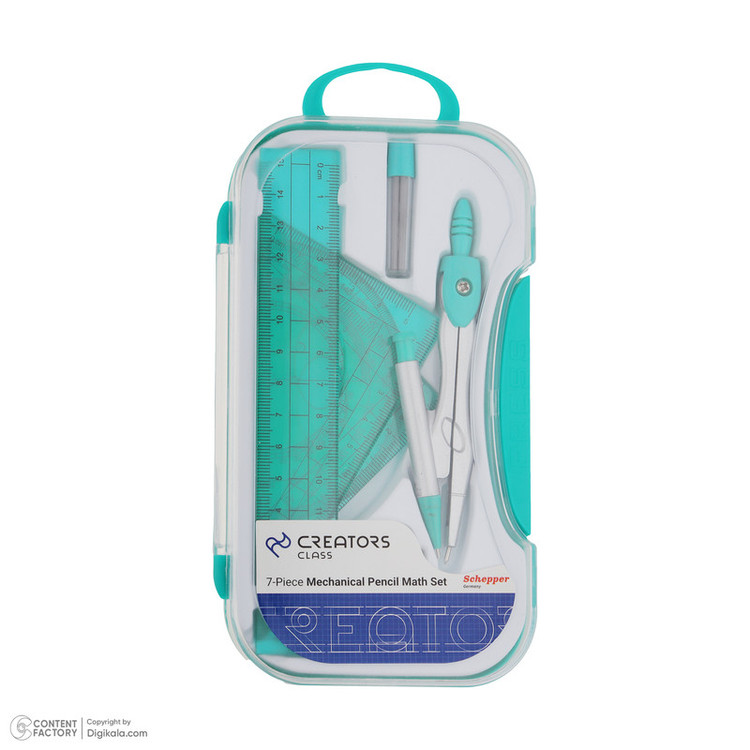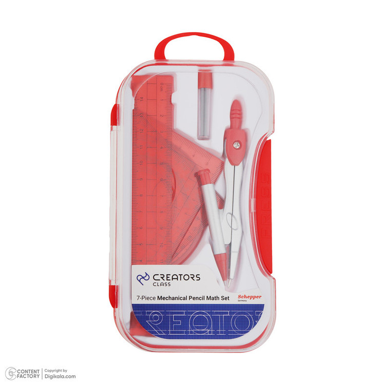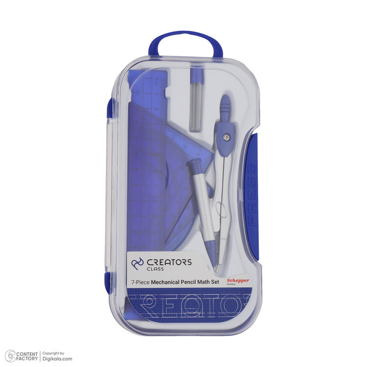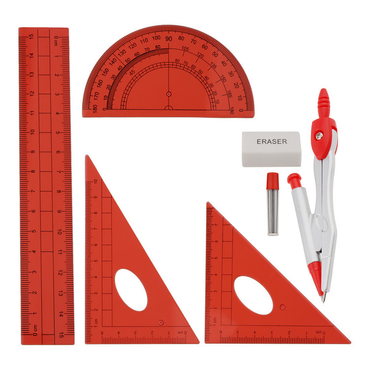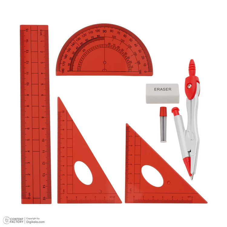 - دارای پرگار اتودی دستی - دارای نوک اتود پرگار - دارای یک عدد پاک کن - دارای خط کش 15 سانتیمتر - دارای گونیا با ضلع 10 و 5 سانتیمتر - دارای گونیا با ضلع 8 و 6 سانتیمتر - دارای نقاله 180 درجه