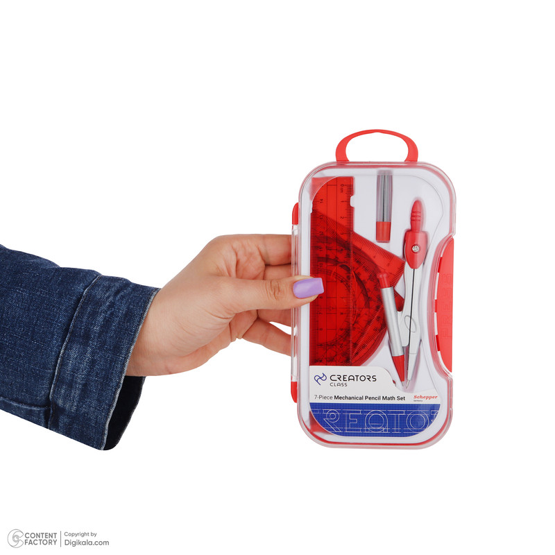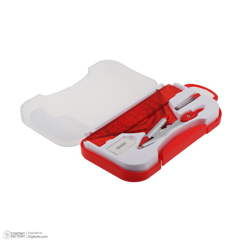 - دارای پرگار اتودی دستی - دارای نوک اتود پرگار - دارای یک عدد پاک کن - دارای خط کش 15 سانتیمتر - دارای گونیا با ضلع 10 و 5 سانتیمتر - دارای گونیا با ضلع 8 و 6 سانتیمتر - دارای نقاله 180 درجه