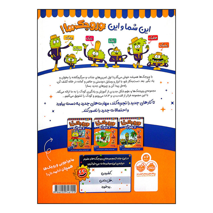 با وروجکها همیشه خوش میگذرد! اول تمرینهای جذاب و سرگرمکننده را بخوان و یاد بگیر. بعد دست به کار شو، با ابزار و وسایل دمدستی و حاضر و آماده در خانه کشف کن، راه حل پیدا کن و چیزهای جدید بساز!