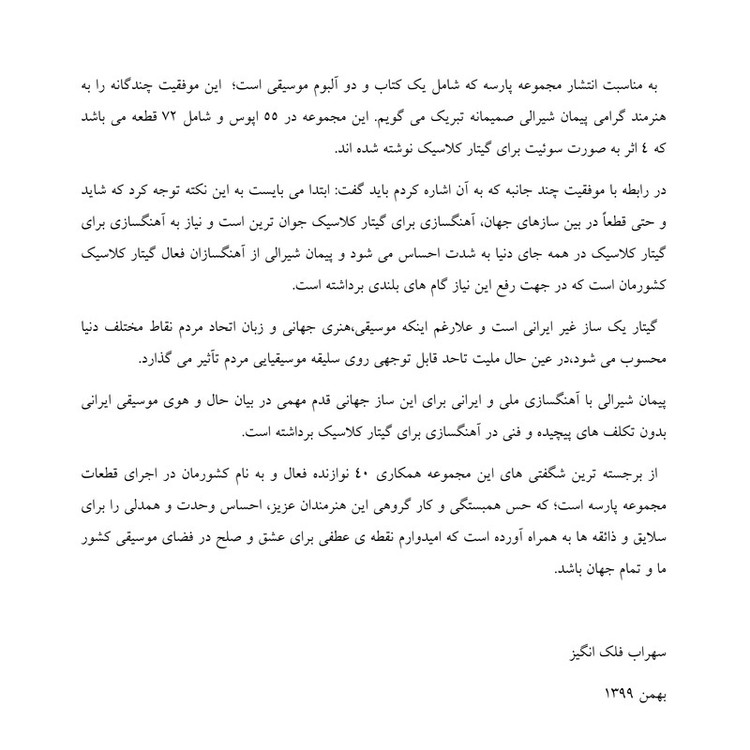 72 قطعه برای گیتار کلاسیک تهیه و تنظیم از پیمان شیرالی