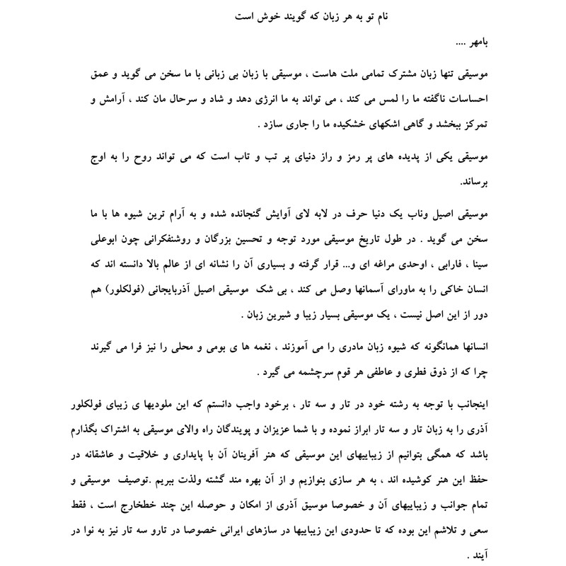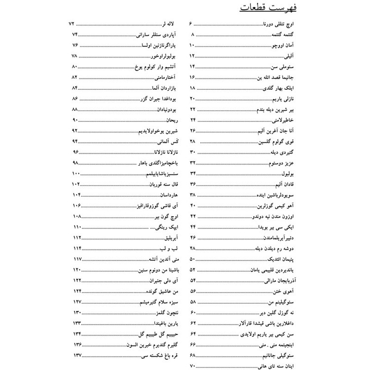 قطعات و تصانیف ترکی آذری برای تار و سه تار همراه با شعر قطعات