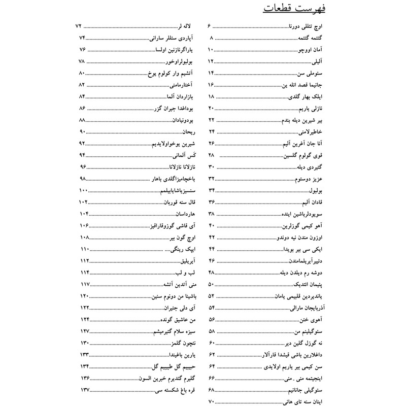 قطعات و تصانیف ترکی آذری برای تار و سه تار همراه با شعر قطعات