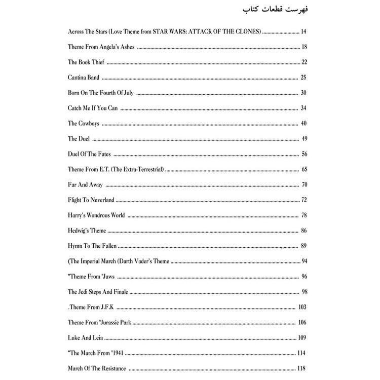 بیش از 40 قطعه موسیقی فیلم اثر جان ویلیامز برای تکنوازی پیانو