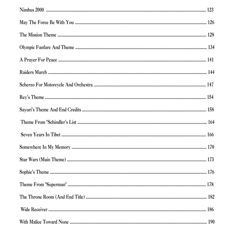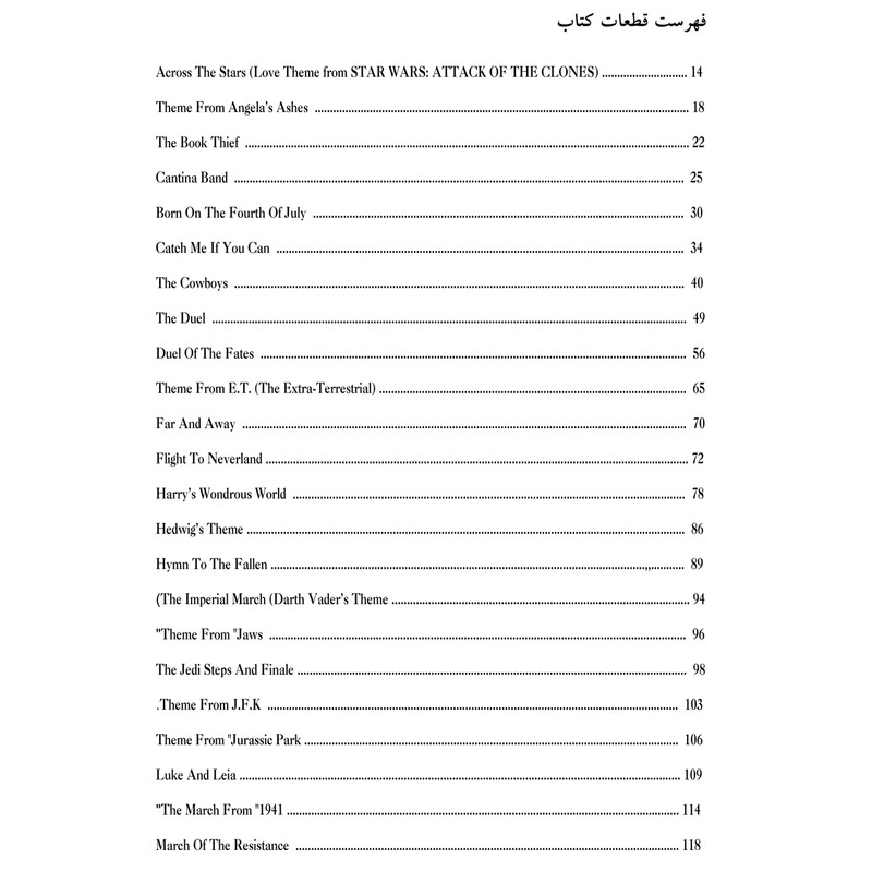 بیش از 40 قطعه موسیقی فیلم اثر جان ویلیامز برای تکنوازی پیانو