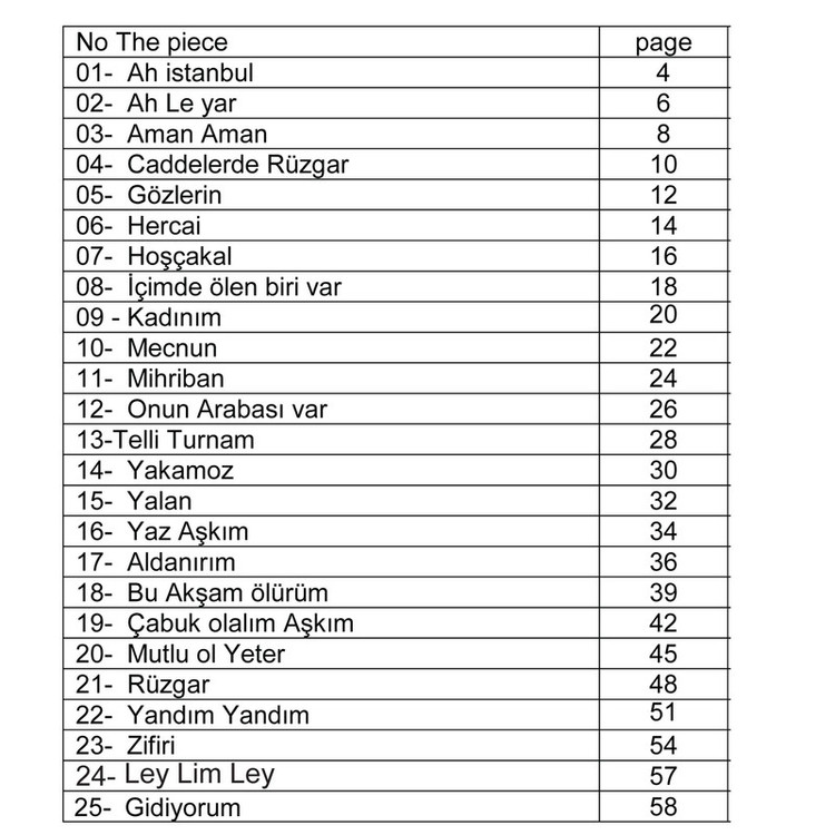 25 قطعه ترکی استانبولی برای گیتار تبلچر و آکورد فایل صوتی