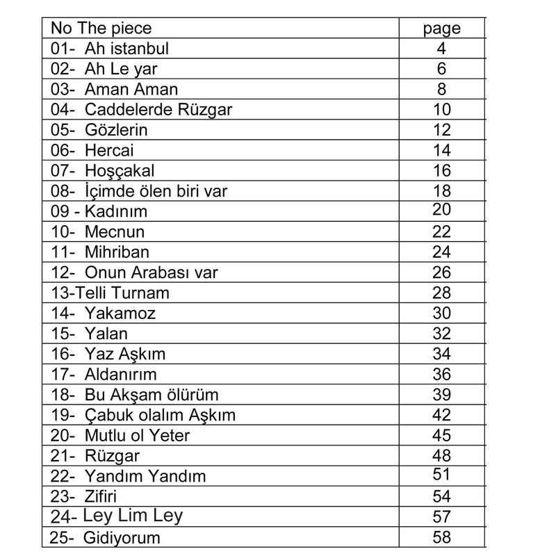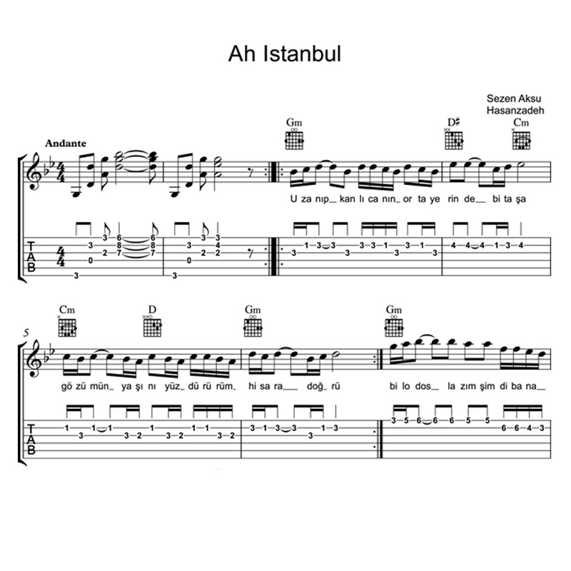 25 قطعه ترکی استانبولی برای گیتار تبلچر و آکورد فایل صوتی