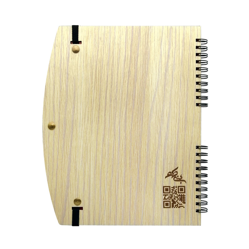 سایر توضیحات : جنس جلد چوبی با طرح هاي متنوع و زيبا به همراه روان نویس کوچک و شامل کاغذ کرافت بدون خط