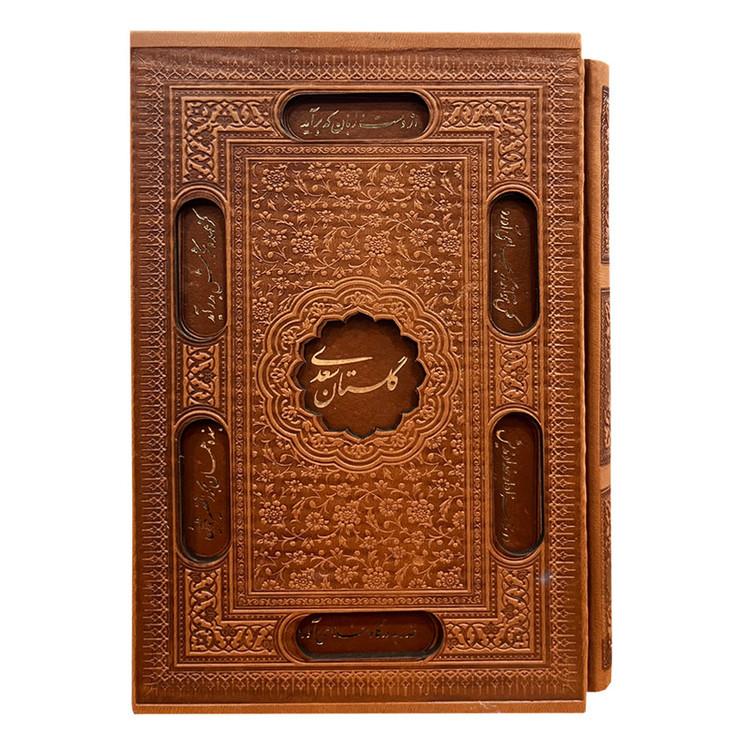 گلستان با جلد چرم سایز کوچک جیبی برگه گلاسه