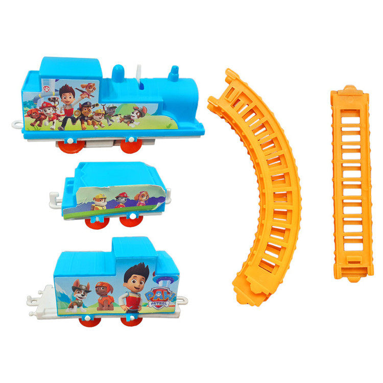 قابلیت حرکت روی ریل دارای 1 عدد لوکوموتیو و 2 عدد واگن دارای بسته بندی جعبه ای دارای 8 عدد ریل ساخته شده از پلاستیک طول لوکوموتیو 11 سانتی متر طول واگن 9 سانتی متر طول واگن کوچک 6 سانتی متر