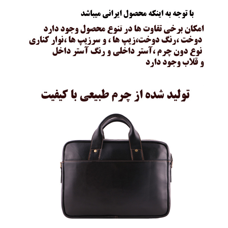 احتمال برخی تفاوت در تنوع ها از رنگ آستر و نوع آستر ،سرزیپ و زیپ ،و ضربه گیر داخل و رنگ چرم وجود دارد ضربه گیر برای لپ تاب دارد بند دوشی دارد