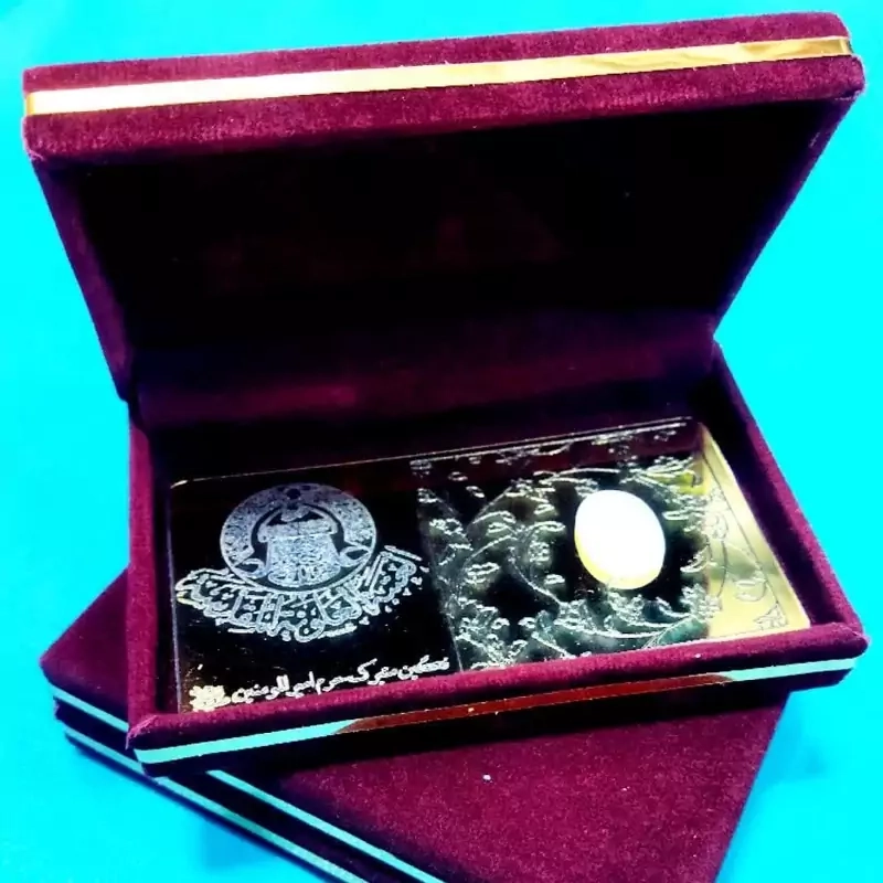این محصول از سنگ های کار شده در حرم مطهر هست که با عنوان نگین انگشتری متبرک حرم امیرالمومنین علی (علیه السلام) هدیه ای نفیس و معنوی برای شما عزیزان میباشد.
