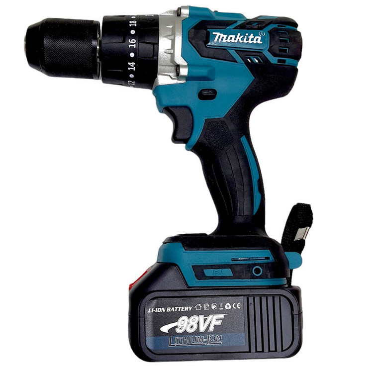 دوعدد باتری لیتیوم یونی 98 ولت در بسته بندی موجود می باشد هردو باتری مدار رگلاتور دارند دریل دارای نمایشگر میزان باتری است باتری ها لیتیوم یون با عمر بسیار بالا می باشند