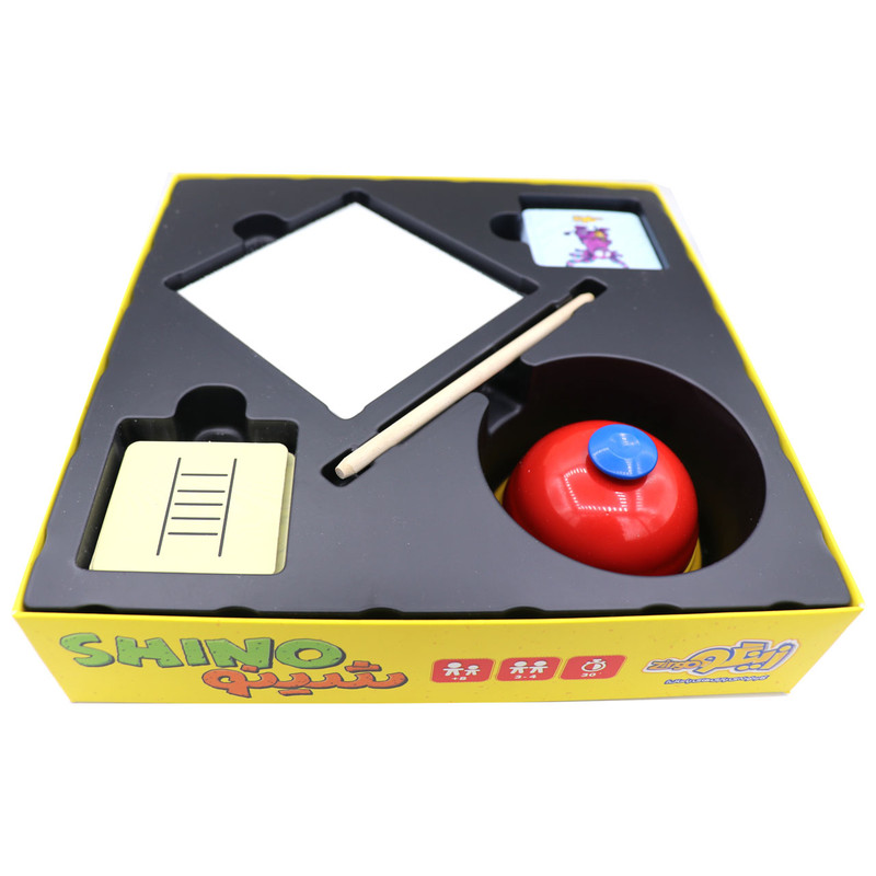 دفترچه راهنمای بازی-- 50 کارت شکل - 1 عدد بوم نقاشی - 1 عدد چوب نقاشی - 1 عدد صفحه .محافظ -1 عد زنگ