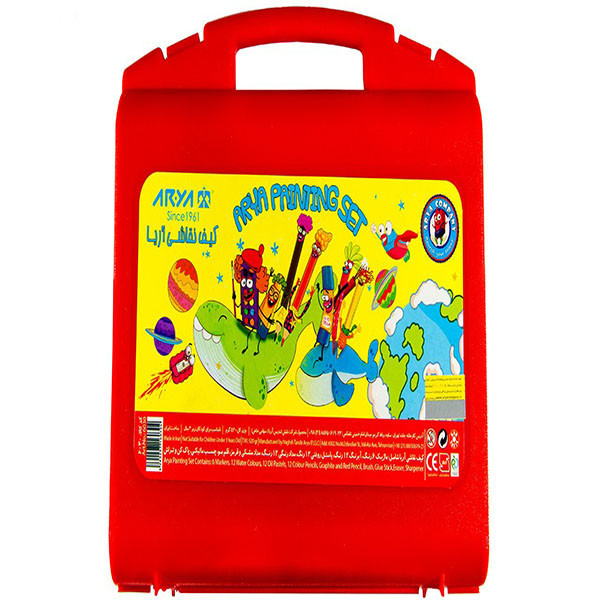 - 12 عدد مداد رنگی - 12 عدد پاستل - 12 عددگواش - 6 عدد ماژیک - یک عدد مداد مشکی - یک عدد مداد قرمز - یک عدد مداد تراش - یک عدد پاک کن - یک عدد قلم مو گواش - یک عدد چسب ماتیکی