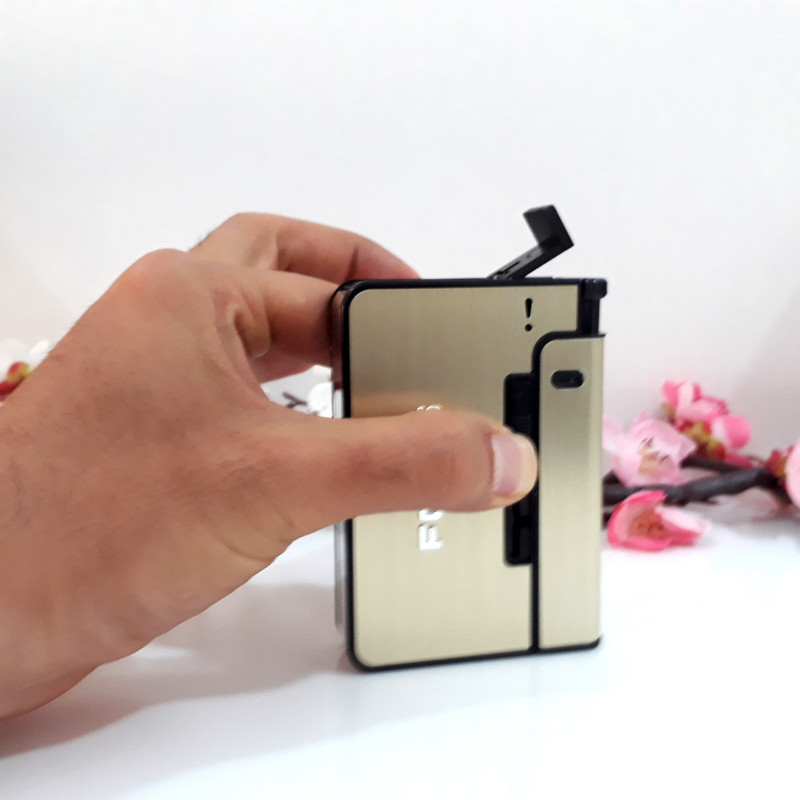 جعبه سیگار پیش روی شما از استیل ضد خش ساخته شده است و در برابر ضربه و رطوبت مقاوم است این جعبه سیگار دارای یک عدد فندک نیز میباشد و همچنین دارای قابلیت پرتاپ سیگار نیز میباشد ضمن اینکه فندک این جعبه سیگار قابل تعویض نیز میباشد