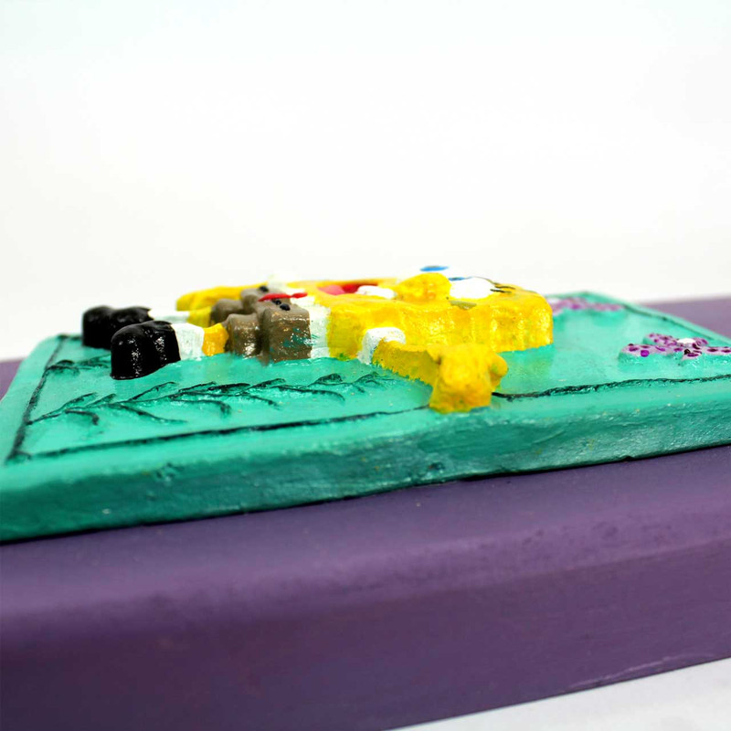 جنس قاب ام دی اف می باشد جنس کاشی سفال دست ساز می باشد که با دست هنرمند رنگ آمیزی شده است تصویر روی کاشی کاملا برجسته است