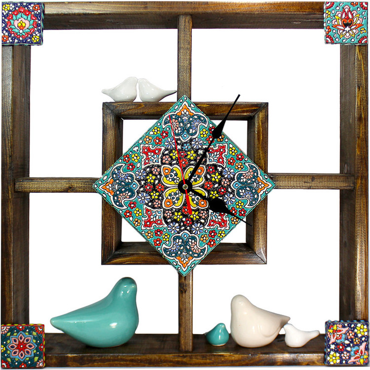 جنس پرندگان سرامیکی میباشند و جهت چیدمان به دلخواه مشتریان بر روی طبقات چسبانده نشده اند جنس کاشی ها میناکاری می باشد