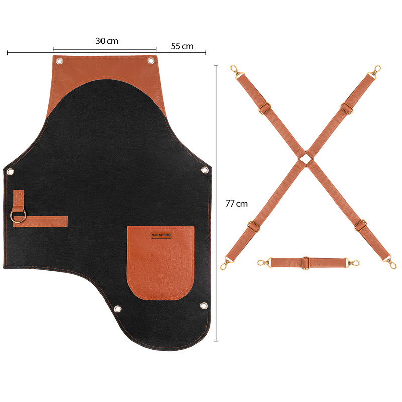 کلاه نادیاهوم یک مدل فری سایز از جنس پارچه نخی است که از قسمت پشت دارای کش و بند بوده و به راحتی روی سر فیکس می گردد. پیش بند نادیاهوم نیز فری سایز بوده و ترکیب پارچه چرم و جین، ظاهری دلپذیر ایجاد نموده ;i بر روی تن بسیار عالی می نشیند. این مجموعه را هم خانم ها و هم آقایان با هر سایز و اندازه ای می توانند استفاده نمایند.