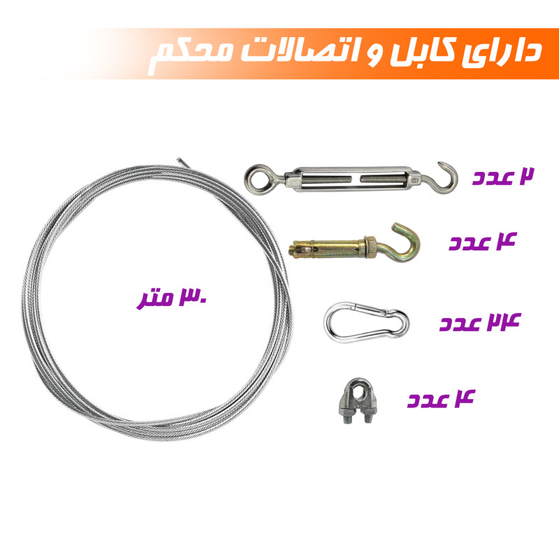 وجود سایبان در باغ، حیاط،کارگاه و هر فضای بازی یکی از مهم ترین ضروریات برای محافظت از وسایل،خودرو، ایجاد سایه روی استخر و راحتی برای استفاده از آت فضا می باشد. سایه بان نادیاهوم بسیار با کیفیت و بزرگ بوده و بر خلاف سایه بان های موجود در بازار با تمام وسایل و لوازم مورد نیاز برای نصب ارسال می گردد تا بدون هیچ دغدغه ای برای خرید وسایل و صرف وقت، آن را نصب نمایید. سایبان نادیاهوم از تور شید با سایه 80 درصد تولید شده است تا بیشترین سایه را فراهم نماید. ابعاد آن 3x6 متر بوده و دور تا دور آن نوار دوزی شده و دارای سوراخ با حلقه های فلزی است. به همراه این سایبان 4 عدد رول پلاک قلاب دار، 4 عدد کورپی( بست بکسل فولادی) ، 2 عدد مهار کش، 24 عدد کارابین و 30 متر سیم بکسل ارسال می گردد تا فقط نصب نموده و از سایه عالی آن بر روی خودرو، استخر، محل نشستن و ... استفاده نمایید. این سایبان به دلیل حالت ریلی ، به راحتی با دو بند تعبیه شده باز و بسته می شود تا در شب و یا زمانی که نیاز ندارید آن را به راحتی جمع نمایید. زیبایی، نصب آسان، ابعاد بزرگ، ریلی بودن، و کامل بودن تجهیزات نصب از مهم ترین مشخصات این کالا می باشد.