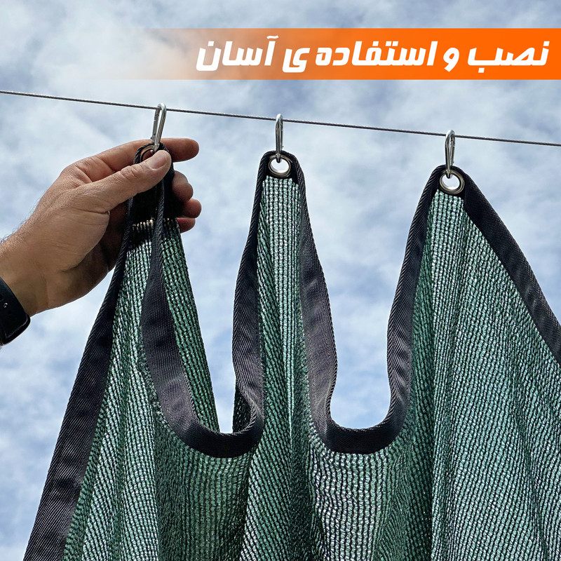 تولید ایران، نصب آسان، همراه داشتن همه وسایل نصب، حالت ریلی و قابلیت جمع شدن، سایه عالی