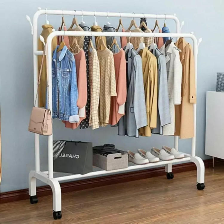 رگال لباس فلزی دوبل چرخدار دوطبقه تحمل وزن 35کیلو