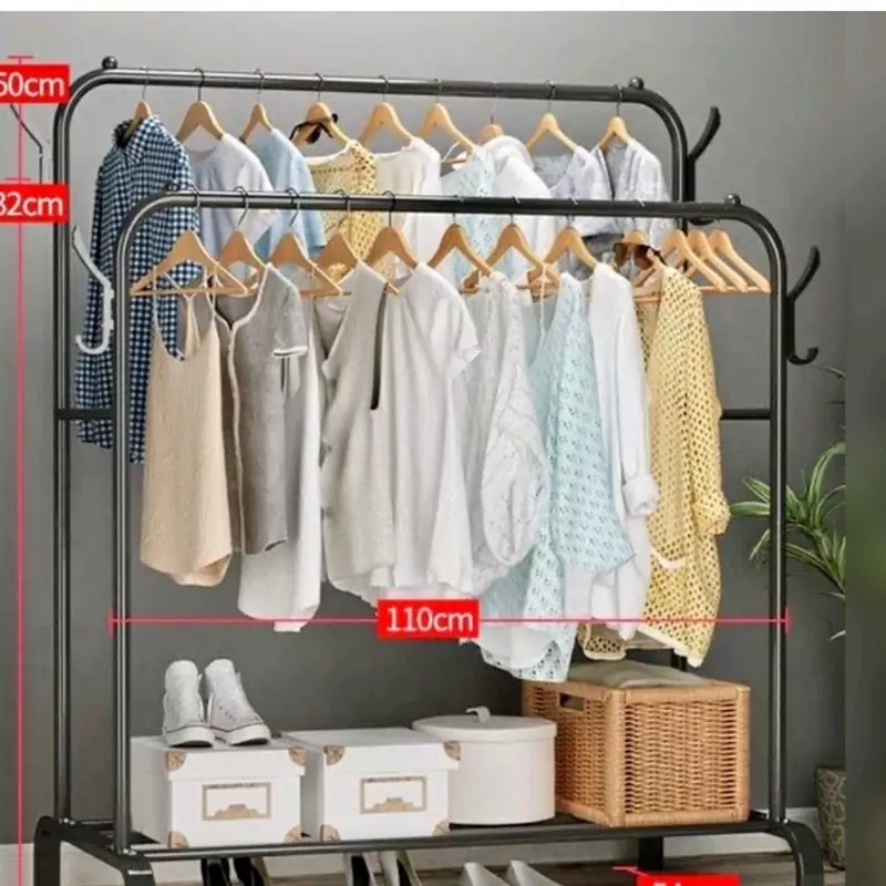 رگال لباس خارجی دوبل چرخدار دوطبقه بالا یه طبقه پایین تحمل وزن 35کیلو جنس فلز روکش شده سایز 110/57/150