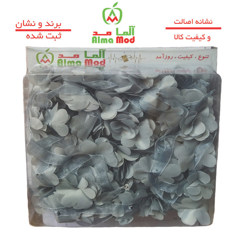 گل های نواری متری از جدیدترین تزئینات برای انواع لباس و دوخت محسوب می شود. گل های نواری آلما مد در بسته بندی مخصوص آلما مد ارائه گردیده است. آلما مد تولید کننده، تامین کننده و عرضه کننده انواع لوازم خیاطی، ملزومات بافتنی و ملزومات هنرهای دستی خانگی با کیفیت بالا می باشد. هنگام خرید به نشانه اصالت کالا و اصل بودن کالا دقت فرمائید. این گل های به طول حدودی 10 متر (با کمی تغییرتهیه شده است. جنس گل ها ساتن و جنس نوار زیرین از حریر می باشد.