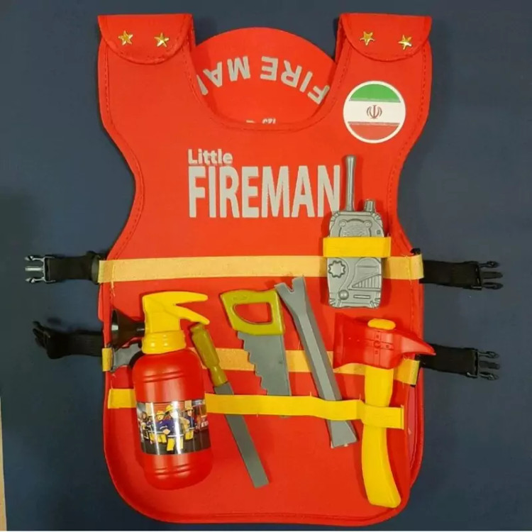 لباس آتش نشانی همراه لوازم ست ایفای نقش جلیقه آتشنشان فری سایز