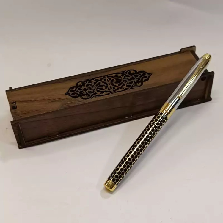 روان نویس جعبه دار شیک کادویی لاکچری قابل حکاکی همراه جعبه کادویی چوبی کد3 خودکار کادویی روز معلم