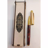 روان نویس جعبه دار شیک کادویی لاکچری قابل حکاکی همراه جعبه کادویی چوبی کد5 خودکار کادویی روز معلم