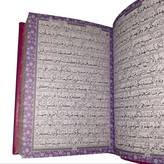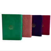 قرآن نیمه جیبی در رنگ های بنفش، سرخابی، صورتی روشن و سبز با خط خوانای استاد عثمان طه و ترجمه استاد حاج حسین انصاریان انتشارات هادی مجد