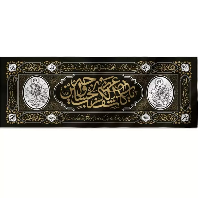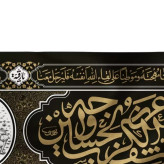 201332-کتیبه چاپ سنگی رنگ مشکی 50در150 طرح یا کاشف الکرب عن و جه الحسین پارچه کج راه(برای ایام محرم و صفر و شهادت)