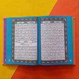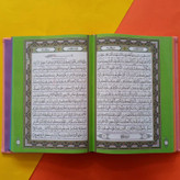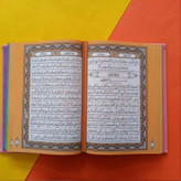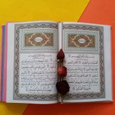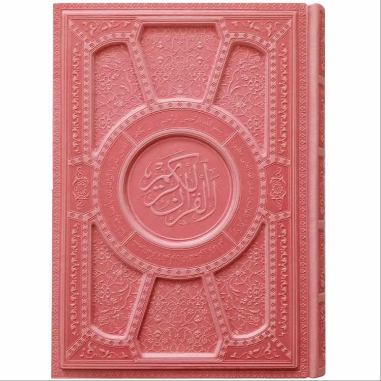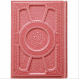 012438-قرآن وزیری ترمو لیزری برجسته صورتی2 داخل رنگی کاغذتحریر4رنگ ترجمه قمشه ای