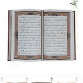 این محصول زیبا و نفیس قرآن کریم از نوع وزیری می باشد , که نوع جلد آن چرم مصنوعی جعبه دار برجسته با طراحی بسیار زیبا است , نوع کاغذ این محصول از جنس گلاسه لبه طلایی با کیفیت خوبی است . این کتاب زیبا شامل 604 صفحه و ابعاد (18 در 24.5) و ست کامل این کتاب با ابعاد (23 در 28) با وزنی معادل 2.712 گرم می باشد .