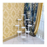 فرم پیچش ستون های استند گلدان مدل پیچک متقارن حس تعادل را به بیننده منتقل می کند و جلوه جذابی را به دکوراسیون تان اضافه می کند. رنگ آمیزی استند گلدان مدل پیچک متقارن به صورت کوره ای الکترواستاتیک با بهترین پودرهای موجود انجام گرفته است که کیفیت قابل اتکایی داشته و مقاومت بالایی در برابر زنگ زدگی ایجاد کرده است. استند پایه گلدان مدل پیچک متقارن برای قرار دادن 9 گلدان مناسب است و همچنین می توان در وسط حلقه مرکزی نیز یک گلدان قرار داد.
