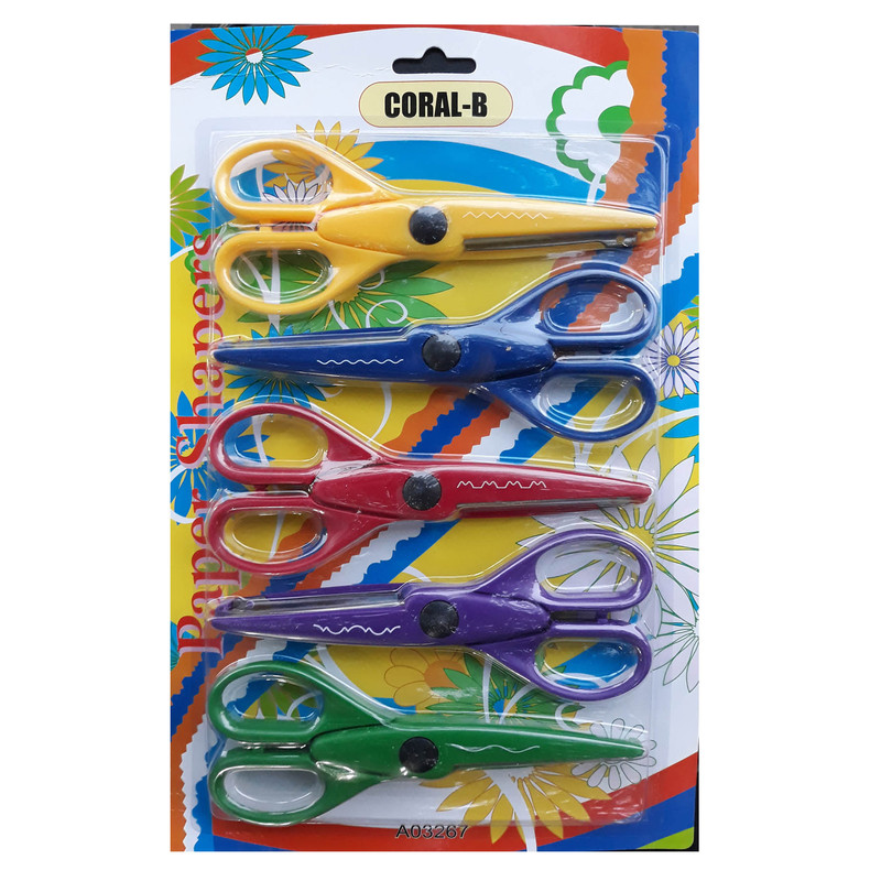 مجموعه 5 عددی قیچی کرال بی در رنگ های جذاب و کیفیت مناسب برای 5 نوع برش زیگزاگ، دالبر و طرح دار مناسب برای بزرگسالان و.کودکان برای انواع متنوع برش در طراحی و مهدکودکها و کاردستی