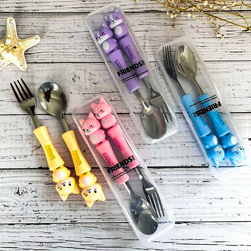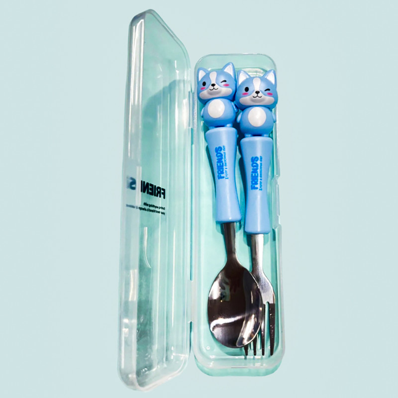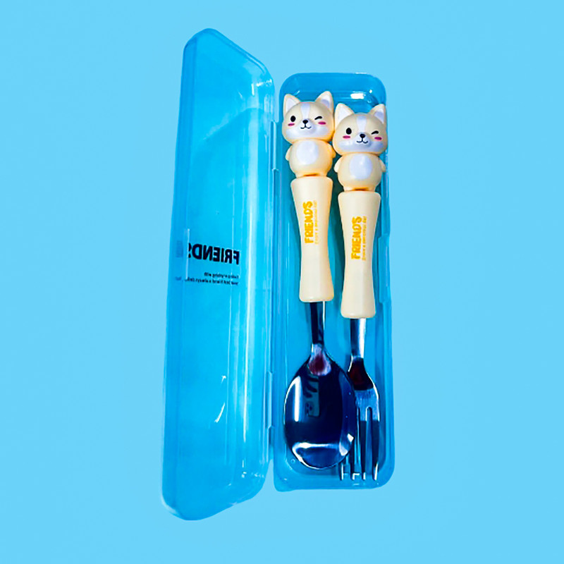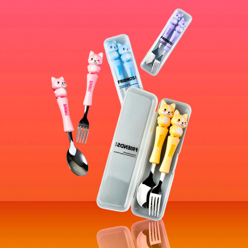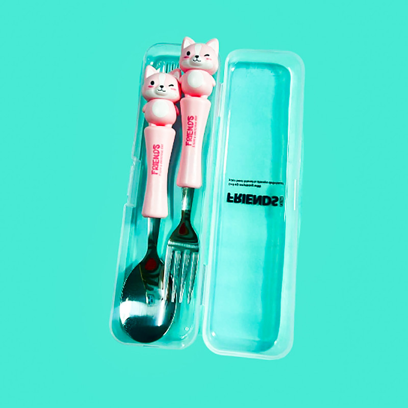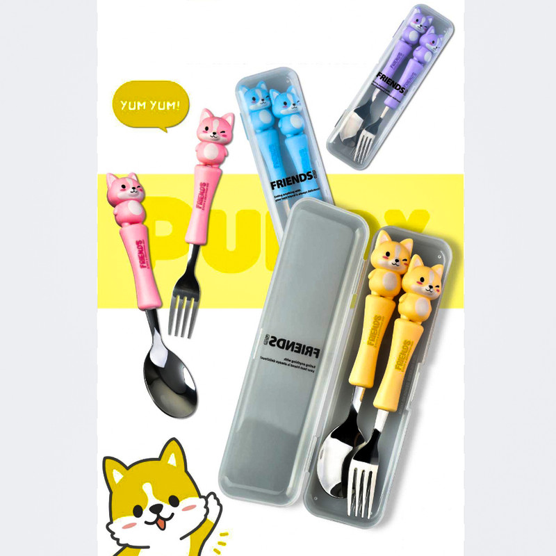 قاشق چنگال عروسکی کودک یک ست جدید که مختص کودکان ساخته شده و طول آن 17 سانتی متر است.که با توجه به طرح جذاب حیوانات آن که مورد علاقه ی بچه ها است غذا خوردن را برای آنها مانند یک تفریح لذتبخش می کند. دارای چهار رنگ آبی روشن_صورتی_بنفش روشن و زرد است. دسته ی آن از متریال با کیفیت پلاستیک سخت ساخته شده است که گزینه ای عالی برای کیف کودک و مادر محسوب می شود.این قاشق از استیل با کیفیت ساخته شده و دسته ی آن به خوبی متصل شده است.این محصول دارای بسته بندی زیبایی است از این رو گزینه ای عالی برای هدیه دادن است. ساخت کشور چین می باشد.