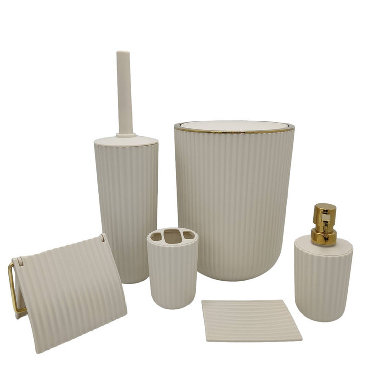 ست سرويس بهداشتي 6 پارچه همارا کد 660249 رنگ وانیلی (کرم خیلی روشن) - شامل يک عدد سطل يک عدد جا مايع دستشويي يک عدد جا فرچه و فرچه يک عدد جامسواکي يک عدد ليوان يک عدد جا صابوني